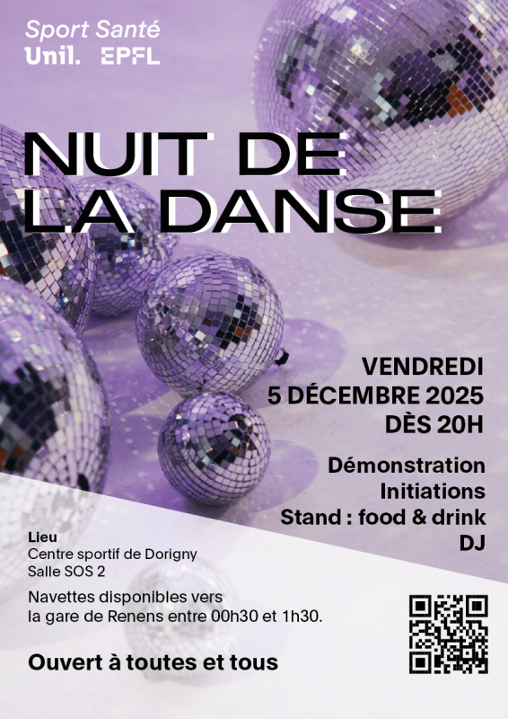 Chaque année début décembre, la Nuit de la Danse met à l'honneur toutes les danses proposées par le Service Sport Santé UNIL+EPFL : show garanti pour un dancefloor qui va chauffer !